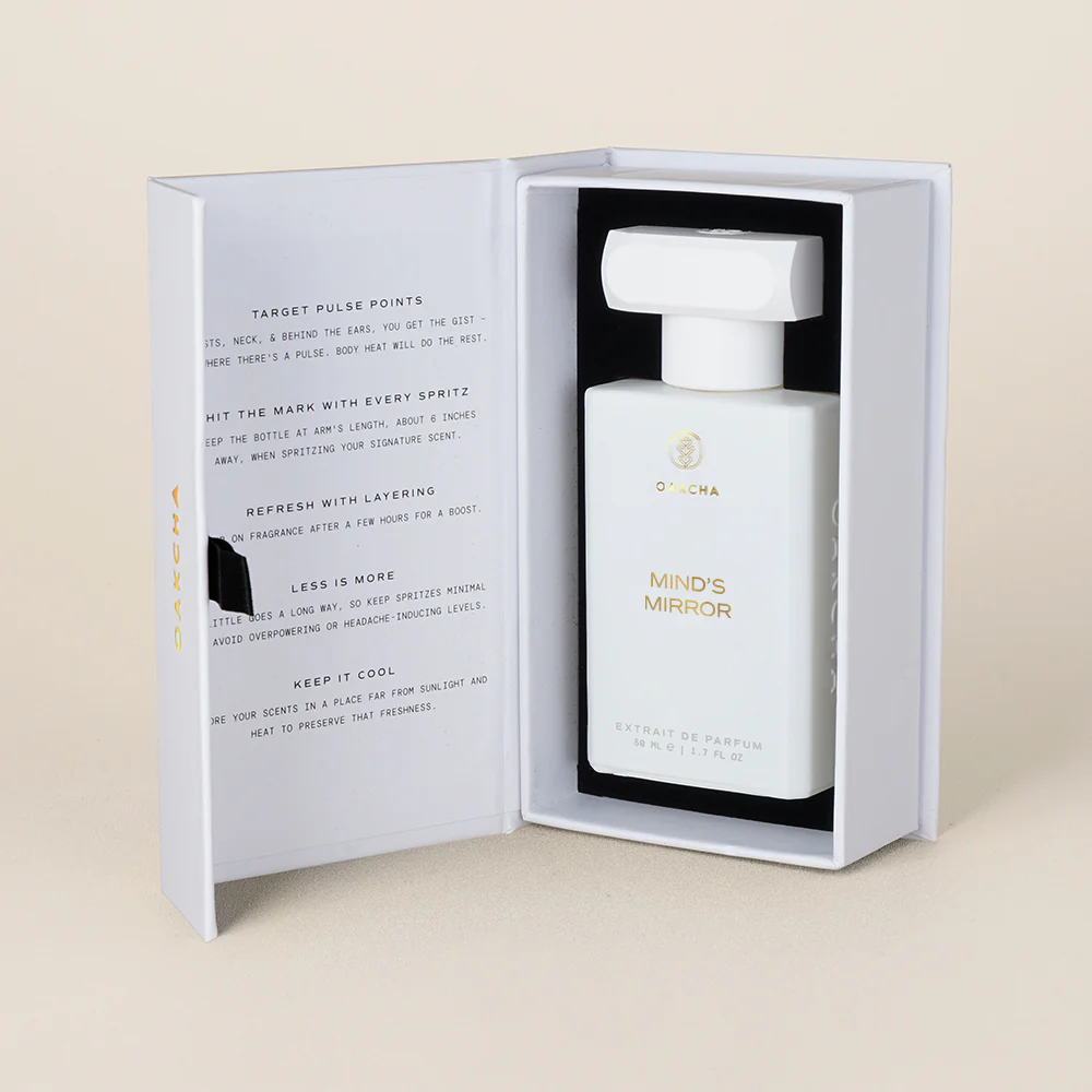 Crafted as a high-concentration Extrait de Parfum, Mind’s Mirror offers lasting wear with a polished, modern trail. Versatile yet distinctive, it’s the perfect finishing touch for elevated everyday wear or moments that call for quiet confidence.