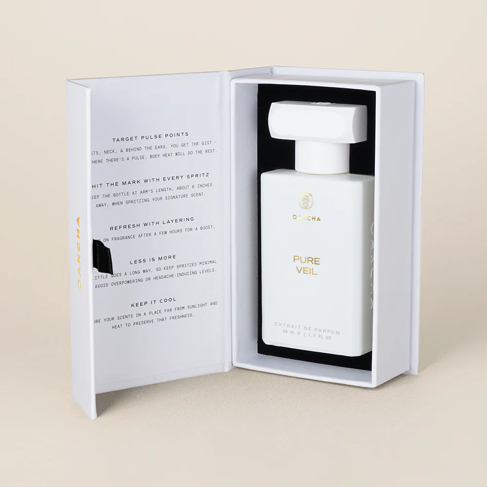 Crafted as a high-concentration Extrait de Parfum, Pure Veil offers lasting wear with a gentle, polished trail—perfect for everyday elegance, daytime occasions, or moments when you want your scent to feel clean, graceful, and confident.